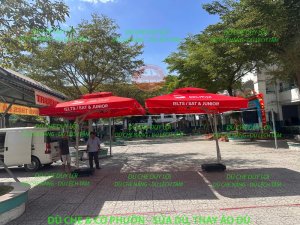 4. Dễ nhận diện thương hiệu: Với 4 mặt in logo và nội dung khóa học, dù vừa có công năng che mưa nắng vừa là điểm truyền thông ngoài trời tự nhiên.